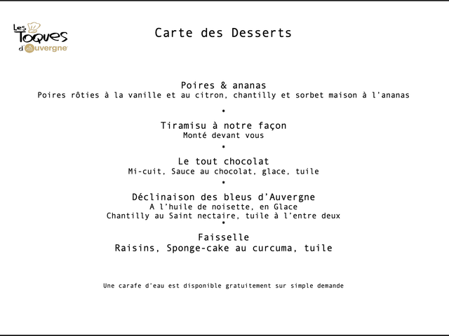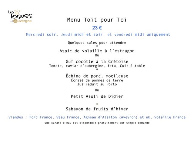 После путешествия мирового океана, и провел несколько лет во главе ресторана и гостевой дом в Аверон, Кристина и Дидье Коззолино решили закрепить в своем регионе происхождения. Эти бывшие профессиональные моряки, мастер - реставратор, возобновили «КРЫША» ресторан с мая 2016 г. Кухня создается с использованием свежих продуктов и как можно чаще в регионе, гармонизируя узнали в другом месте и ароматы детские воспоминания.